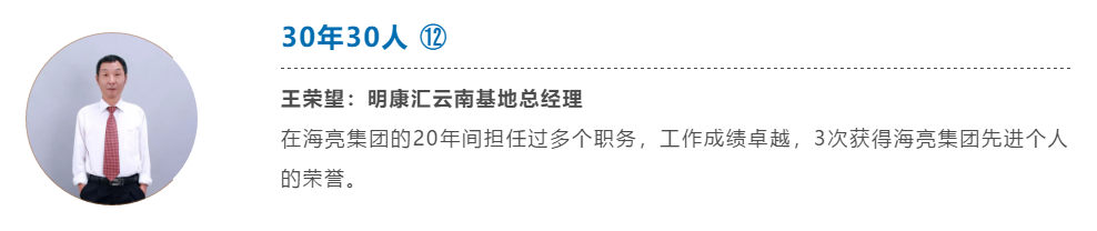 20年的時光,王榮望將青春連同一腔熱血灑在海亮的基業上,他高昂的工作熱情、積極的學習態度、永不服輸的工作狀態,值得每一個人學習!